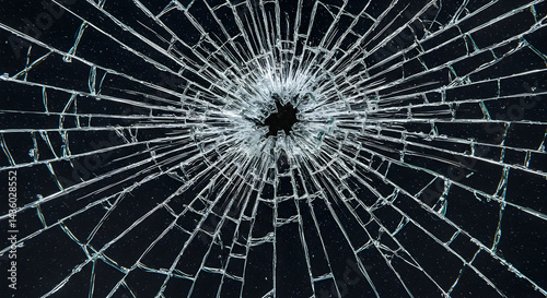 © ARDIA, Fototapeta premium Cracked Glass Texture On Black Background Showing Force Impact Pattern