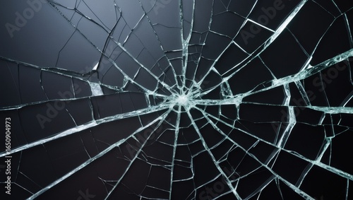 Fototapeta premium Cracked glass with a web-like pattern and a dark background.