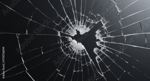 Fototapeta premium Cracked glass with radial pattern on dark background for abstract design