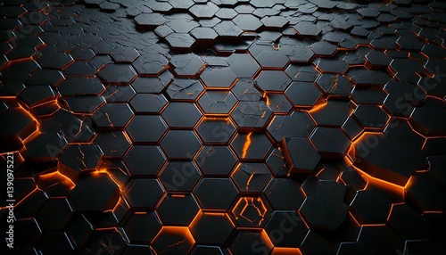 Obraz premium Cracked hexagon pattern with glowing edges