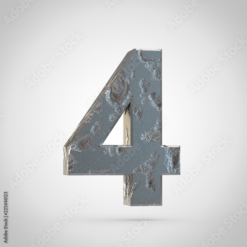 © Whitebarbie, Obraz premium Cracked metal number 4 isolated on white background