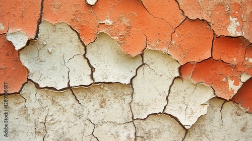 Obraz premium Cracked orange and beige weathered wall texture with peeling paint detail