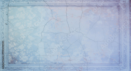 Obraz premium Cracked Plaster Wall with Ornate Frame, Vintage Blue Texture Background