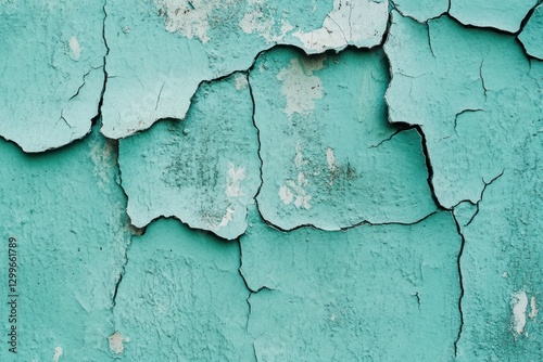 Obraz premium Cracked turquoise paint on aged wall texture.