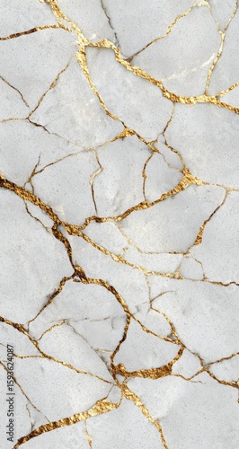 © 6yalli, Obraz premium Cracked white marble with gold veins
