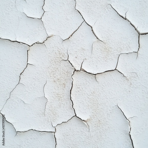 Fototapeta premium Cracked white wall texture highlights wear and aging effects