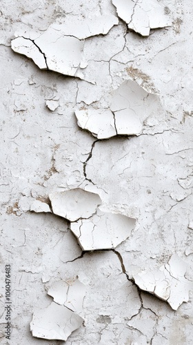 © Flowaiart, Obraz premium Cracked White Wall with Flaking Paint Texture