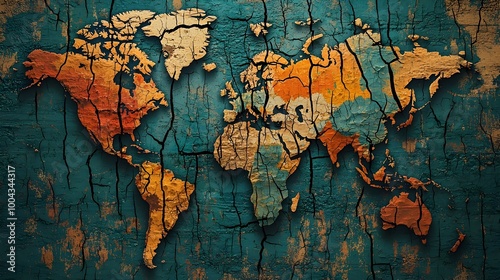 Naklejka premium Cracked World Map Symbolizing Broken Trade Relations and Global Conflict