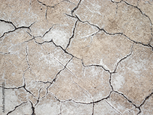 Fototapeta premium Cracks and surface defects. Flat lay in gray and beige tones.