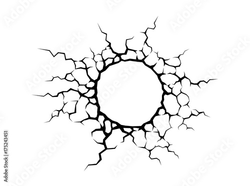 Fototapeta premium Cracks hole in the wall. Cracked concrete or damage on white background. Texture design in grunge with stone style.
