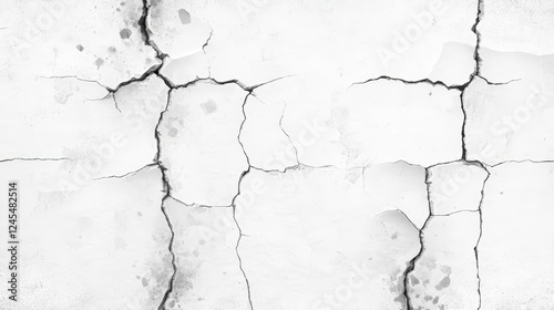 © Planetz, Obraz premium Cracks on a White Wall with Texture and Detail, Isolated Background for Use in Design and Illustration Projects