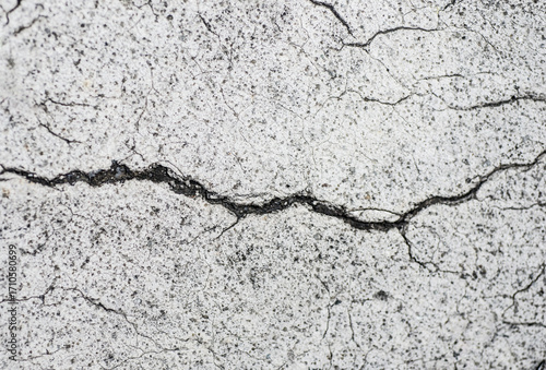 Fototapeta premium Cracks on the cement floor, close-up. Abstract background.