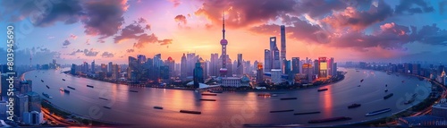 Fototapeta premium Craft a digital panoramic artwork showcasing a seamless integration of...