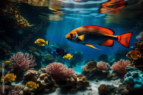 Fototapeta premium Craft a mesmerizing AI-generated scene of a Tropical Fish gracefully...
