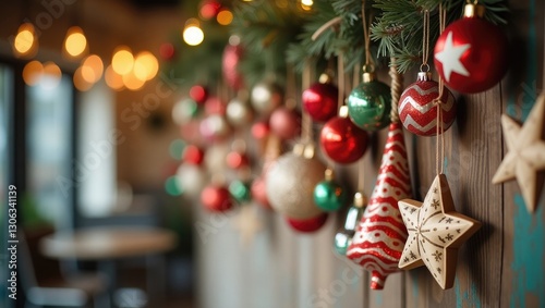 © MetaPixel, Obraz premium Crafted seasonal ornaments hang from the branches on the wall.
