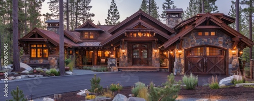Fototapeta premium Craftsman lodge with handcrafted, rustic details.