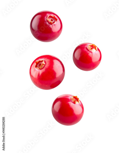 Fototapeta premium Cranberries Floating on White Background
