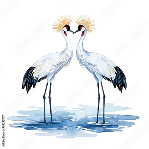 © Linggakun, Obraz premium Crane birds vector Japanese style vector watercolor art isolated on white background