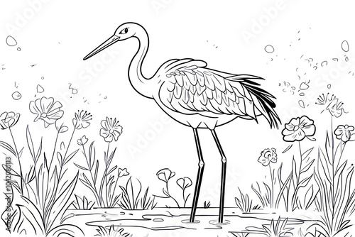 © Inspiration, Fototapeta premium Crane, coloring page for kids, line art, black and white.