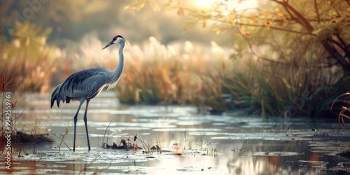 © YuDwi Studio, Fototapeta premium Crane in the Morning Mist