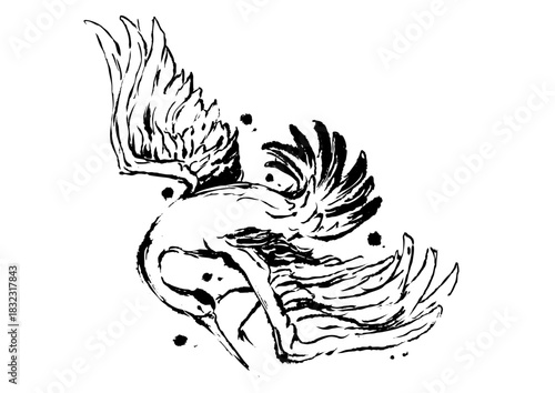 Fototapeta premium Crane Ink Painting – Japanese Sumi-e Art