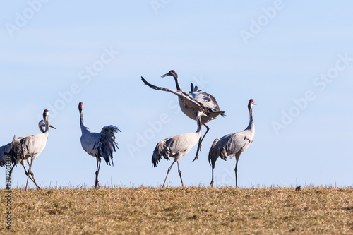 Obraz premium Crane jumping in the spring