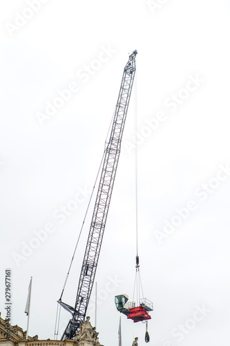 Fototapeta premium Crane looking tall in a construction site