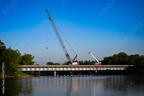 © Kathy, Fototapeta premium crane on bridge over the river