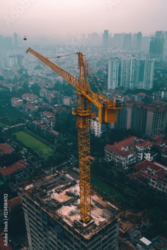 © Goncharenko, Obraz premium Crane on Building Rooftop