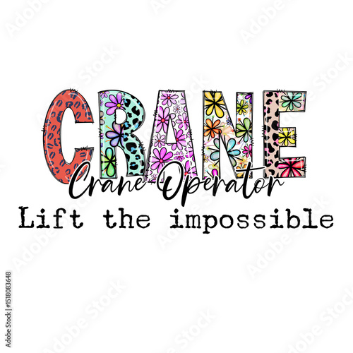© Sandra, Fototapeta premium Crane Operator Design with Flowers and Animals - Motivational Apparel Graphic