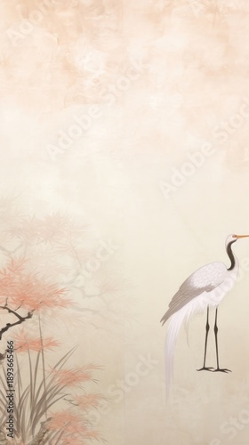 Naklejka premium Crane scenery wallpaper animal bird backgrounds.