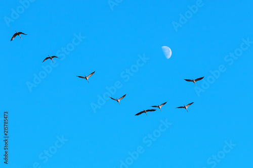 © Lars Johansson, Fototapeta premium Cranes and moon
