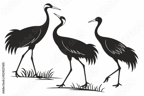 © mst, Obraz premium cranes bird sihouette black vector bundle
