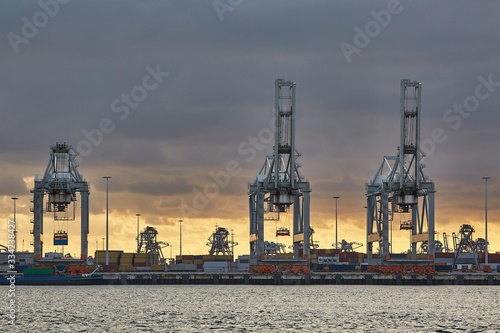 © Gudellaphoto, Obraz premium Cranes of a container shipping terminal