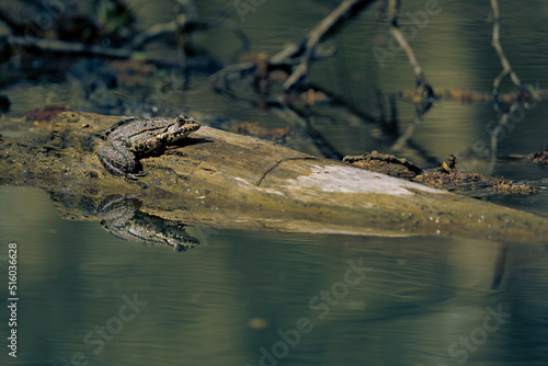 © alexsem, Obraz premium Crapaud sur tronc immergé, avec reflet