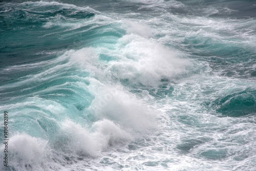 © Pokki, Fototapeta premium Crashing Waves and Foamy Ocean Surface