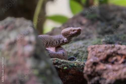 Fototapeta premium Craspedocephalus malabaricus, (formerly Trimeresurus malabaricus) commonly known as Malabar pit viper, Malabar rock pit viper, or rock viper.
