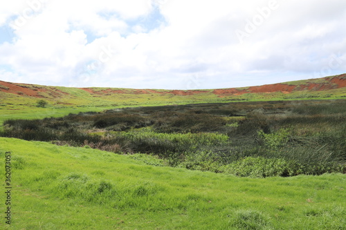 Fototapeta premium Cratère du volcan Rano Raraku à l'île de Pâques