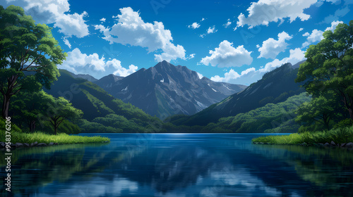 Fototapeta premium Crater Lakes Landscape Anime Style Styl