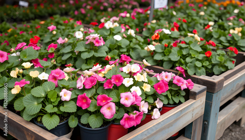 © Sergey, Fototapeta premium Crates with Dutch geranium plants ready for export. isolated with white highlights