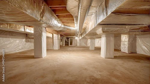 Fototapeta premium Crawl space encapsulation with vapor barrier and insulation