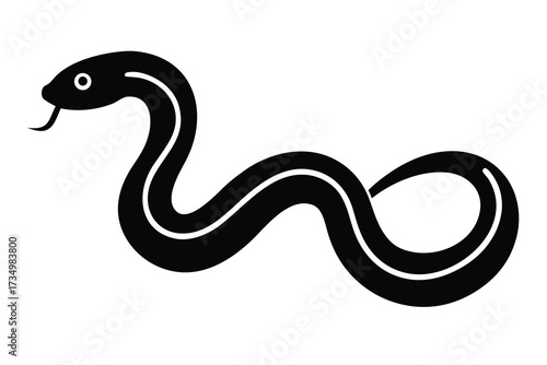 © SreeRaton, Fototapeta premium crawling snake silhouette vector illustration on black colour and white background