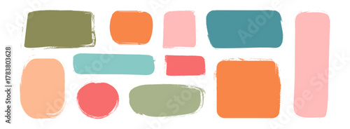 © Sylfida, Naklejka premium Crayon shape text box, color brush frame, kid doodle square, rectangle. Chalk highlight scribble border, grunge texture speech block. Pastel banner isolated on white bg. Abstract vector illustration