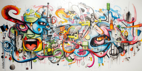 © Damianius, Naklejka premium Crazy Colorful Abstract Graffiti Background Created Using Artificial Intelligence