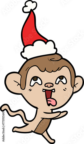 Obraz premium crazy hand drawn line drawing of a monkey running wearing santa hat