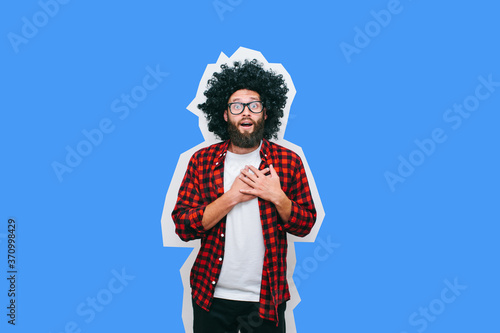 Fototapeta premium Crazy hipster guy emotions. Collage in magazine style .