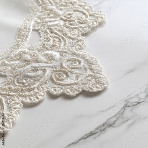 © Raduh, Obraz premium Cream And White Lacy Embroidered Fabric Trim