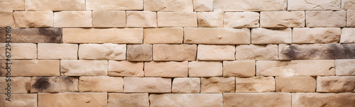 © Moon Project, Obraz premium Cream brick wall. Textured background.