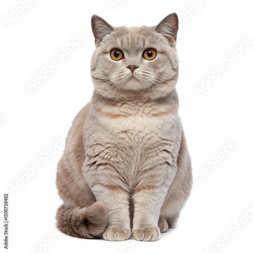 © Real Stuff PNG, Obraz premium Cream-Colored Cat with Amber Eyes Sitting on White Background.