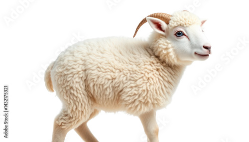 © diditlagi, Obraz premium Cream Colored Fluffy Sheep with Small Horns on White Background